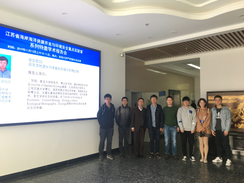 2019年11月13日上午,复旦大学贺强研究员在严恺馆502作了题为“滨海湿地退化与修复的环境与生物过程”的学术报告,围绕滨海湿地退化与修复问题,从经济学、社会学、生态学等多角度多方面展开了详细的阐述,为人类活动加剧影响下的海岸带生态修复提供了新框架、新思路。