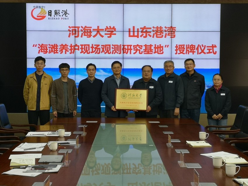 2019年11月13日,成人漫诸裕良副院长、张弛教授等一行4人前往山东省日照市与山东港湾建设集团有限公司为成人漫 海滩养护现场观测研究基地与成人漫 大学生实习实践就业基地举行授牌仪式。出席本次仪式的还有山东港湾建设集团有限公司总工程师刘安、工程技术室主任来永刚、日照港退岸还海项目负责人庄磊、工程设计咨询公司副经理张贵改。