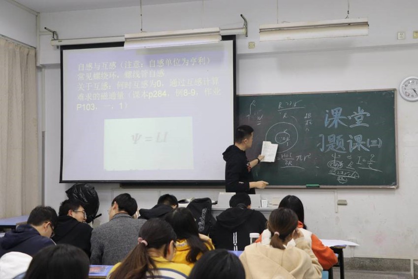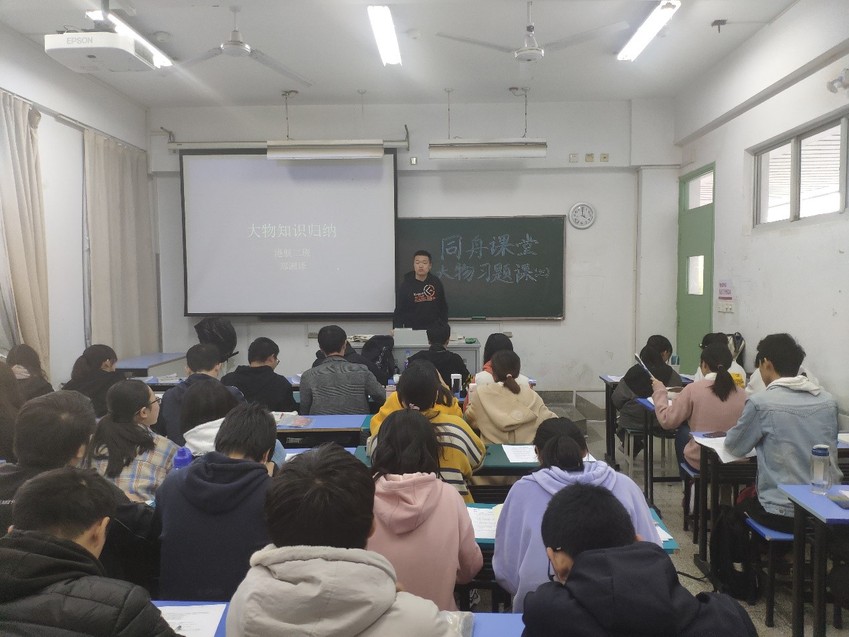 2019年11月22日下午四点,港航院“同舟课堂”大物习题课(三)在成人漫 江宁校区致用楼207举行。本次习题课由2018级郑湘译和朱晋针对21日下午开展的《大学物理Ⅱ》模拟考试卷进行讲解和拓展延伸。