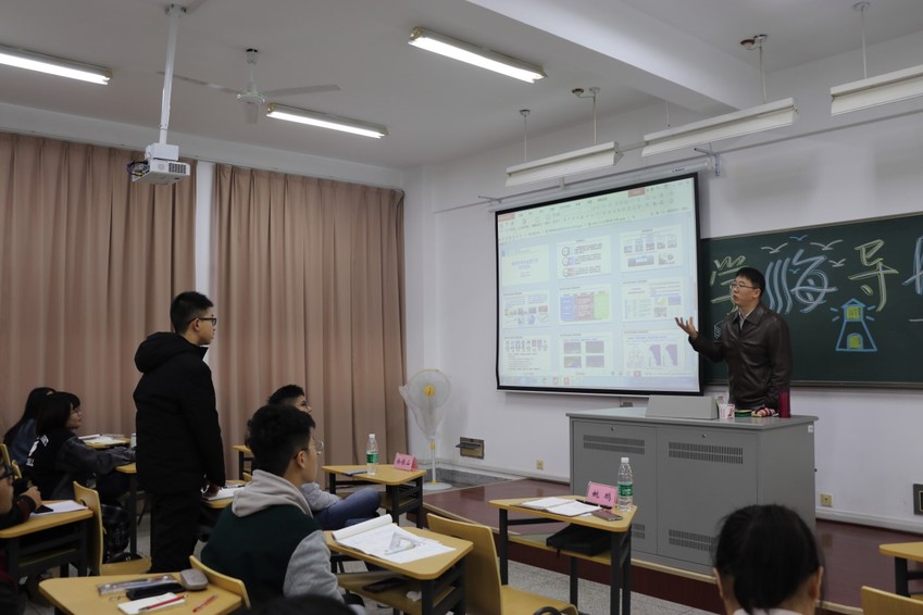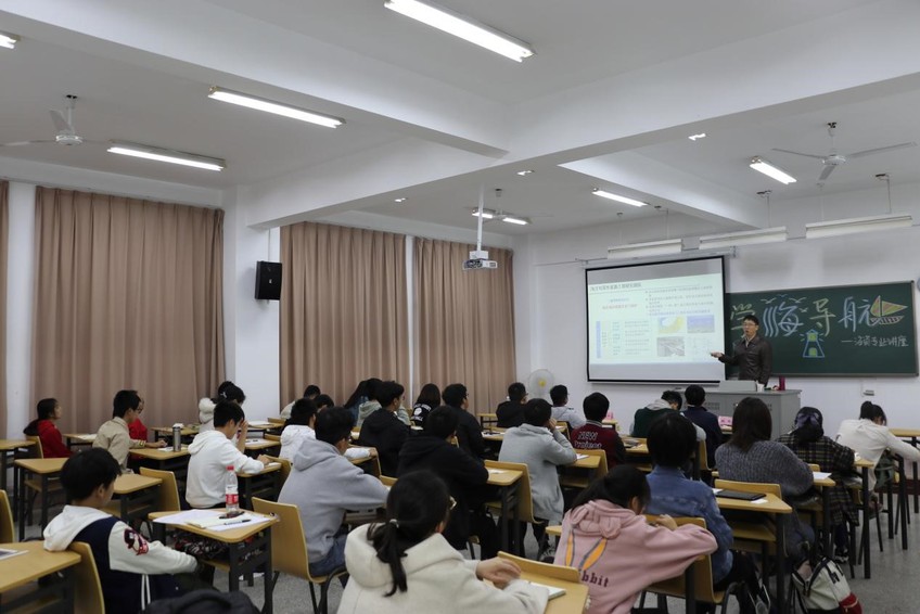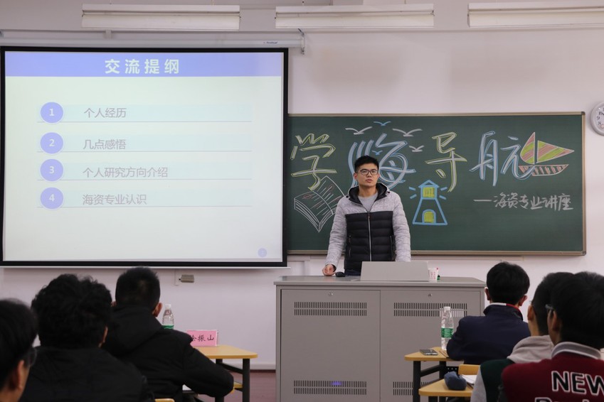 徐振山老师分享了自己的成长历程,告诉同学们要以积极的态度去面对人生的选择,强调了自信的重要性,并向同学们介绍了个人的研究方向与海资专业的认识。