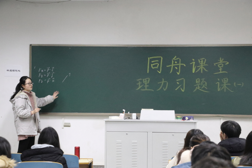 2019年12月24日下午4点,港航院“同舟课堂”理力习题课(一)在成人漫 江宁校区致用楼119举行。本次习题课由朱晋带领2018级同学们复习《理论力学》中静力学和运动学。