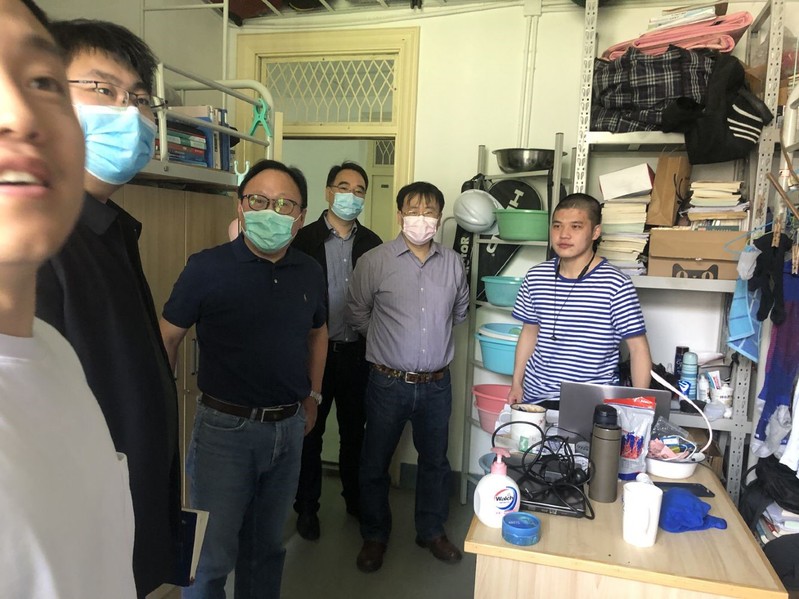 随着新冠肺炎疫情得到控制,港航院部分学生已有序返校,为全面了解返校学生的思想动态和学习生活情况,5月13日成人漫 龚政院长和胡忠华书记带领全体院领导、辅导员到学生宿舍走访看望返校学生。