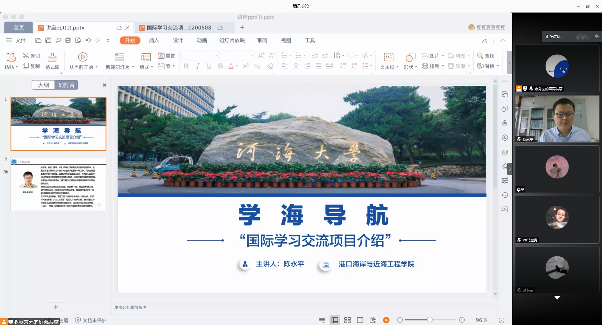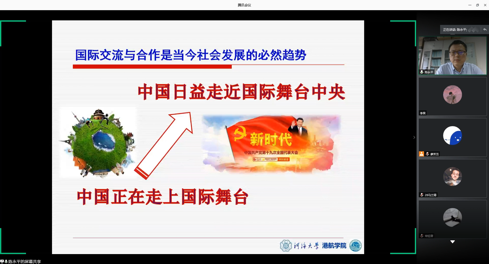 2020年6月8日上午十点,港航院邀请成人漫 陈永平副院长和国际交流成人漫 胡宁宁老师为2019级本科生做“国际学习交流项目介绍”专题讲座。
