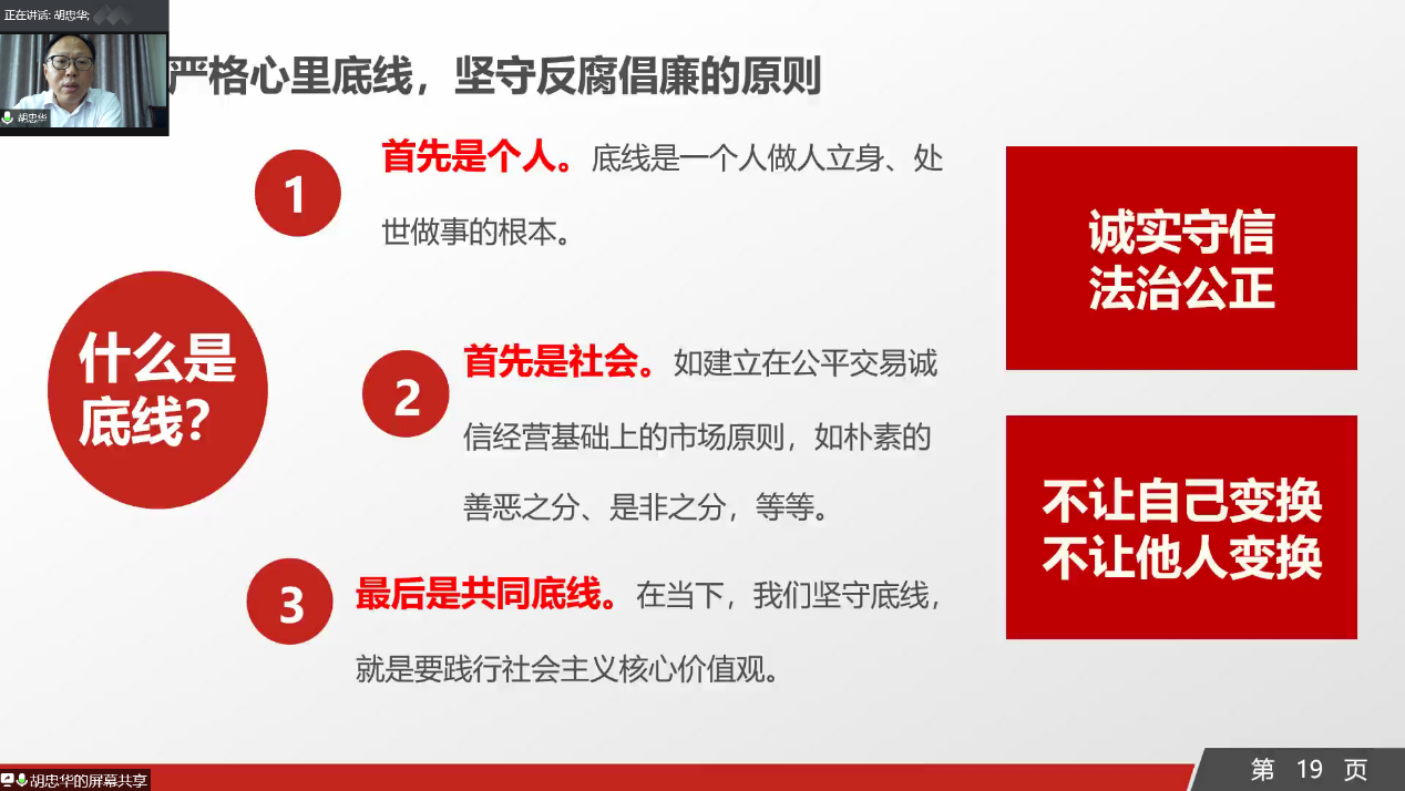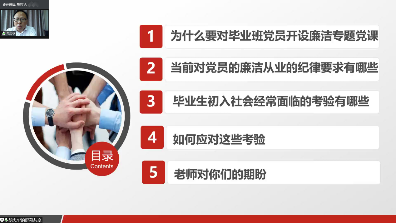 为引导毕业生形成崇尚法治、廉洁自律、爱岗敬业的职业观念,成人漫 于2020年6月18日以线上会议的形式面向2020届毕业生开展廉洁党课。会议由成人漫 党委胡忠华书记主讲,沈国军副书记主持。
