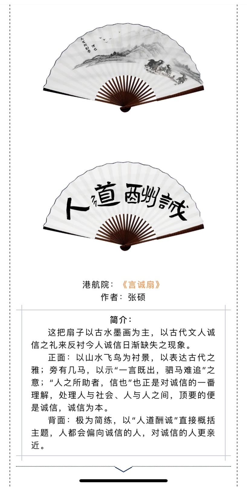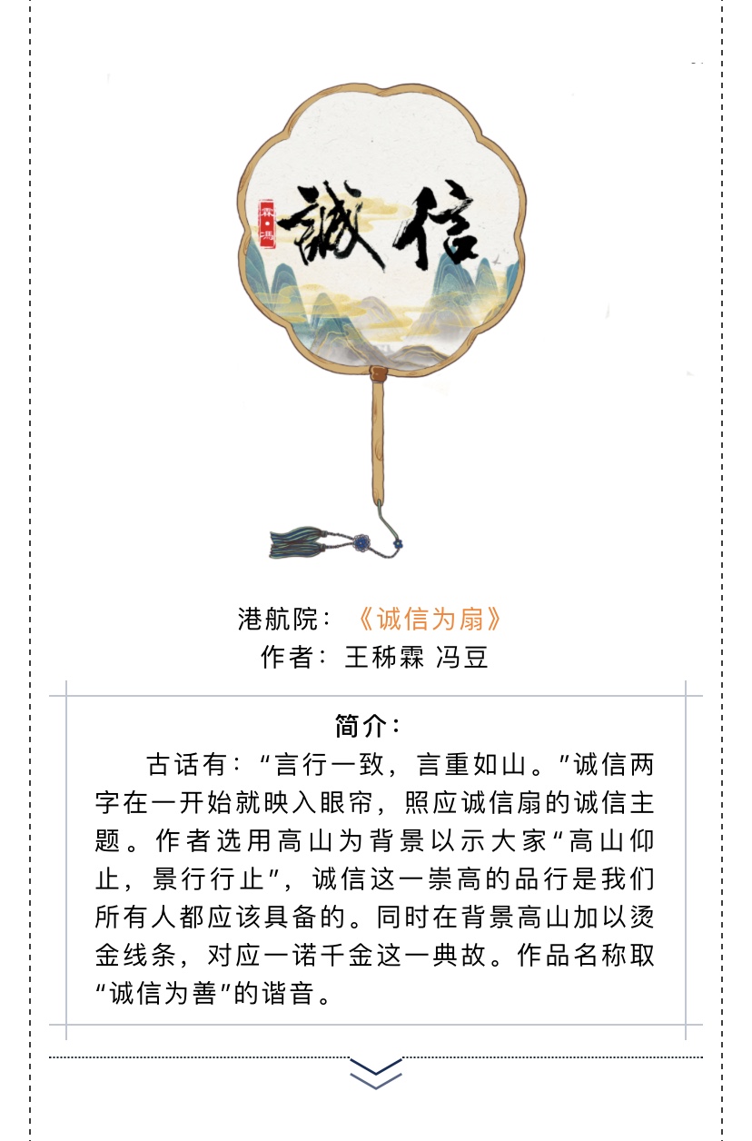 2020年6月,为响应学校第八届“诚信·励志·感恩”主题教育月活动,提振资助育人实效,港航院承办的第五届“诚信你我,携扇同行”书画诚信扇线上绘制活动圆满结束。