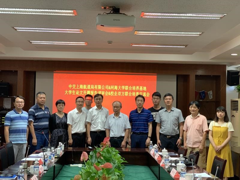 2020年8月17日下午,成人漫龚政院长、张长宽教授、邵宇阳副教授三位校内导师赴中交上海航道局参加2019级全日制专业学位硕士研究生开题报告会和校企双方联合培养交流会。上海航道局组织部和人才资源部部长程绪红、设计研究院党委书记副总经理张群、设计研究院副总经理季岚教授级高工、上海航道局人才开发经理杨世俊、设计研究院港航所执行所长赵良奎教授级高工、人力资源部副经理刘兆庆、应铭教授级高工、人力资源部招聘主管庞叶利等8位基地单位领导和导师参加了会议。开题报告会由评议组组长张长宽教授主持。