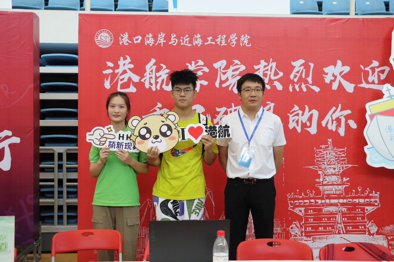报到期间,港航1班班导师隋倜倜、港航2班班导师张研、港航3班班导师达波、港航4班班导师黄挺、港航5班班导师沈骁腾、海资1班班导师苏敏在助学导师的协助下有条不紊的检查着新生的个人信息、分发学校物资,为新生们解疑答惑。新生们也纷纷和成人漫 老师在迎新背景板合照,记录大学报到时刻。
