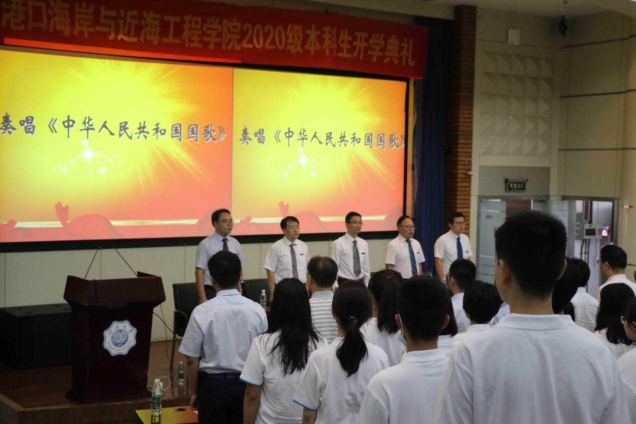 2020级辅导员林晨老师带领新生宣誓——做一名合格的港航人。典礼在师生共唱校歌中落下帷幕。