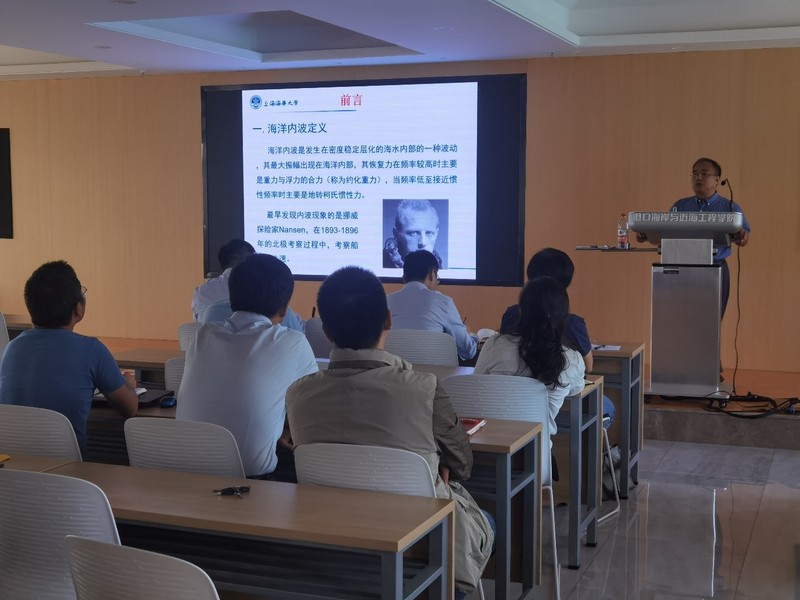张洪生教授作了题为“两种表面边界条件下分层海洋中内波传播的数值模拟”的学术报告,报告详细介绍了南中国海海域内波的特征与影响、自由水面和刚盖假定两种水面边界条件下的内波在空间传播特征与动力特性方面的对比分析。会后,张洪生教授和与会师生就南中国海内波的相关问题展开了热烈的讨论与交流。该报告会是成人漫海岸灾害及防护教育部重点实验室河口海岸保护利用系列特邀学术报告会系列报告,对成人漫在海岸与海洋工程防灾以及水波动力学方面的学科发展起到了良好的推进作用。