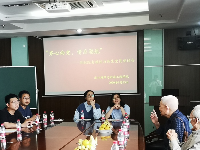9月23日下午,港航院“齐心向党,情系港航”——老教授与新生党员座谈会在严恺馆502举行。座谈会邀请到葛明达、洪广文、鲁子爱、舒红缨、唐耿星、徐金环、张东生七位老教授与2020级研究生新生党员进行交流,学院党委书记胡忠华主持座谈会,党委副书记沈国军出席。