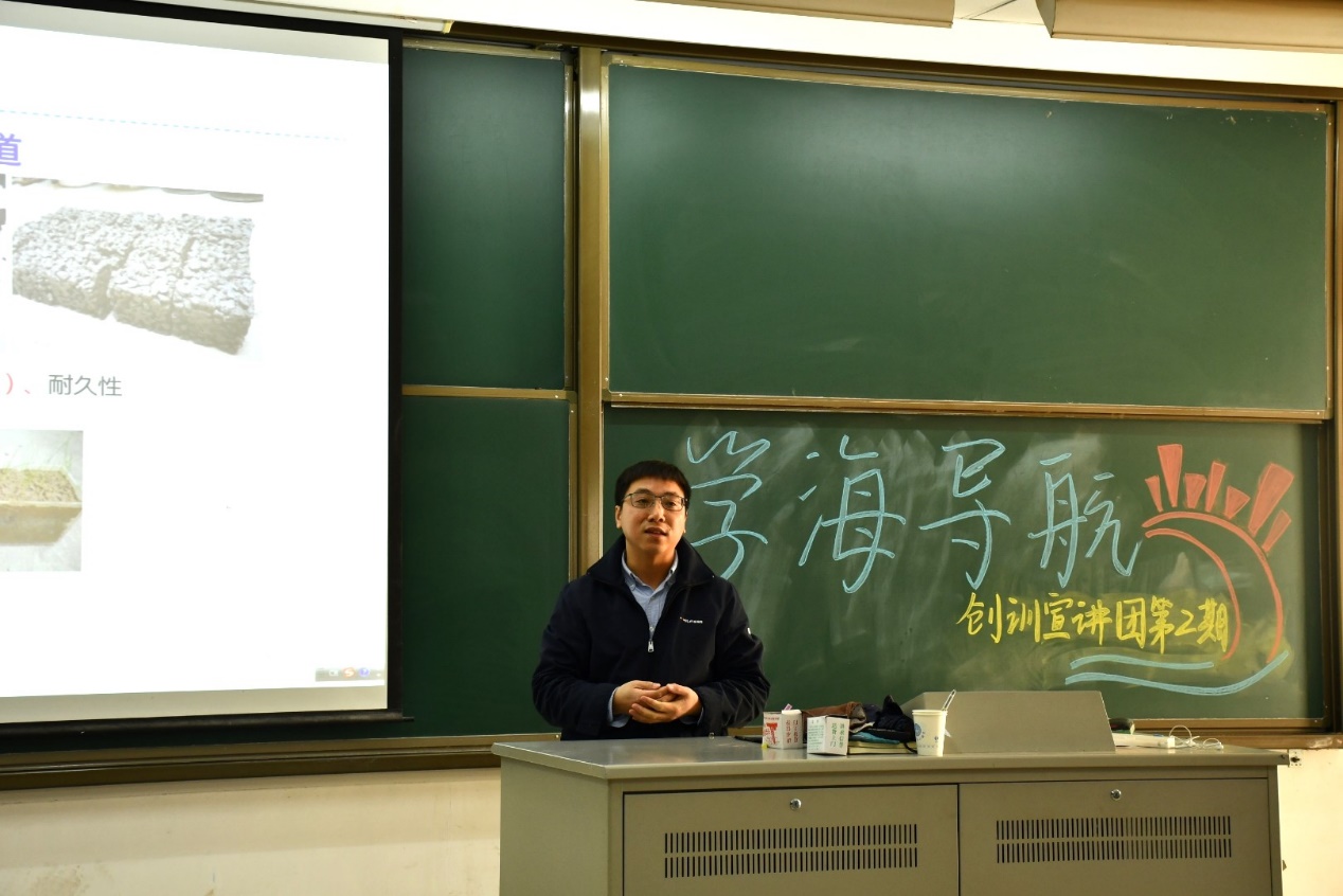 冯兴国老师以往期他所指导的创训优秀学生为例,介绍了他对学生的培养目标,详细讲述了参加创训的收获,鼓励同学们积极参加创训,让同学们对于未来有了新的思考。
