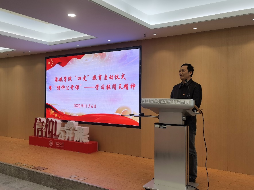 至此,港航院“四史”教育仪式正式启动。仪式通过对以张闻天为例的老一辈河海人的解读与学习,加强学生思想政治教育,坚定当代青年人的立场与担当。呼吁广大青年放眼党史、新中国史、改革开放史、社会主义发展史。以史为鉴,知过去、抓现在、图将来,为推动祖国繁荣富强发展树立更清醒、更坚定、更先进的思想武器。
