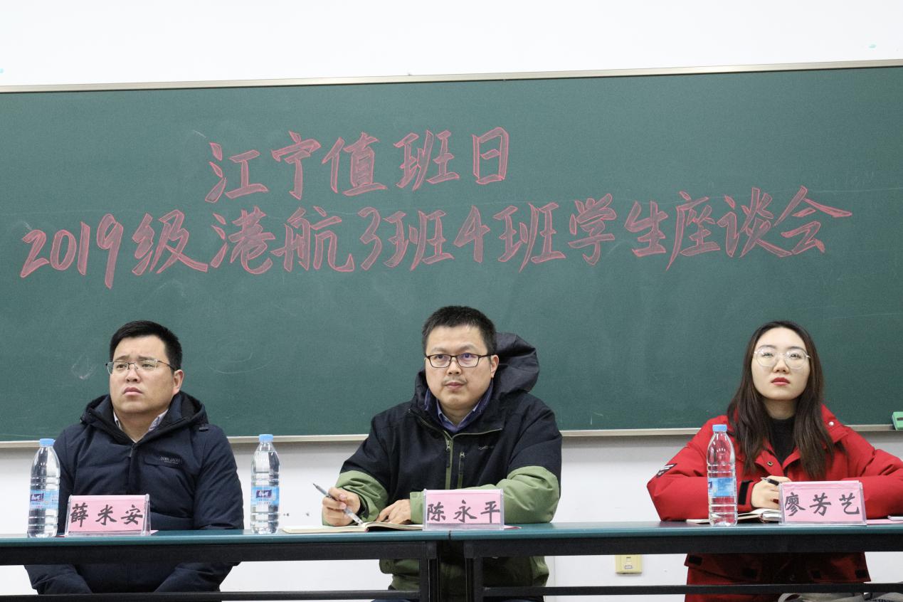 2020年12月8日下午14时,江宁值班日—2019级港航3班4班学生座谈会在江宁校区励学楼A209举行。港航院陈永平副院长、2019级港航4班班导师薛米安老师、辅导员廖芳艺老师出席了本次座谈会。