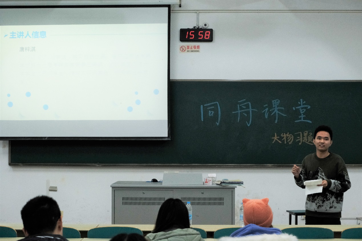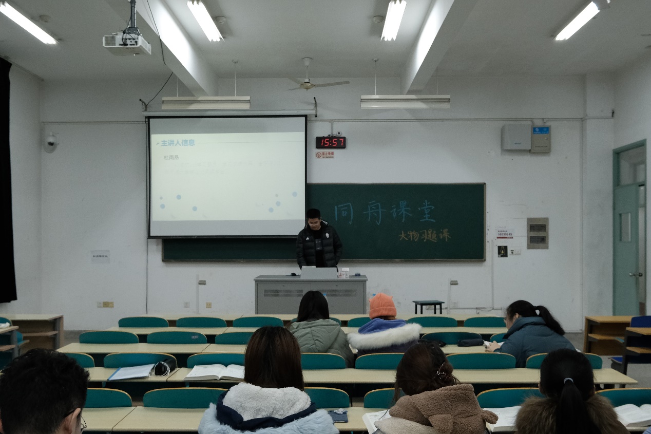 2020年12月8日,港航院“同舟课堂”之大学物理习题课在江宁校区致高楼B104顺利举行。本次活动的主讲人是港航院2019级唐梓淇和杜雨昂两位同学,他们分别就恒定磁场和电磁感应的一系列问题向同学们做了详细的解说。
