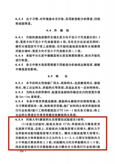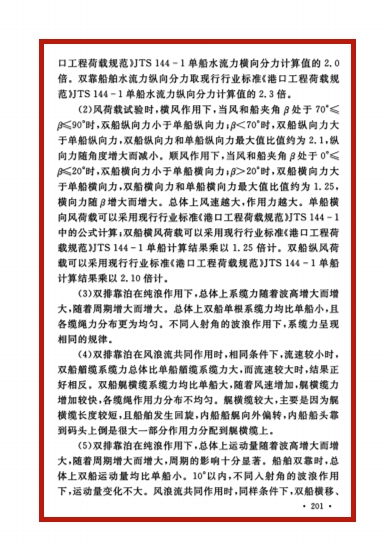 成人漫严士常老师具体完成的“舾装码头双排靠泊试验”得到双靠船舶分别在水流、风、波浪单独作用以及风浪流共同作用等不同工况下船舶运动和受力的规律,提出风荷载、船舶作用力和系缆力的计算方法,为本标准所采用。