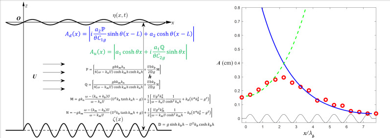 图2 连续沙波地形上逆流行进波幅随流速变化(左)与波幅空间分布(右)
