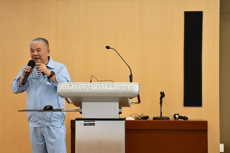 报告会上,杰出校友、全国劳模、中交海南工程项目执行总经理夏风同志为师生作了题为“河海人的家国情怀”的精彩报告,以多年来海洋工程建设和奋斗的工作经历为主题,详细讲述了第一线海洋工程建设中遇到的艰险困苦和用忠诚担当的爱国精神践行“南海精神”的感人事迹。党课结束后,支部同志与夏风同志就如何发挥党员在业务工作中带头作用,如何推进党支部“双创”工作进行了交流。