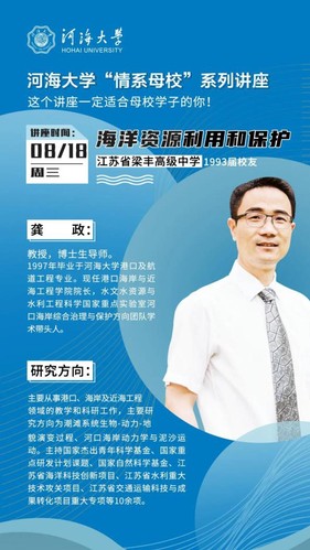 8月18日,首场成人漫 “情系母校”系列讲座在江苏省梁丰高级中学举行,成人漫 院长龚政教授作为江苏省梁丰高级中学1993届校友,应邀作了题为《海洋资源开发利用与保护》的讲座,近800名高中学子通过网络在线聆听了讲座。