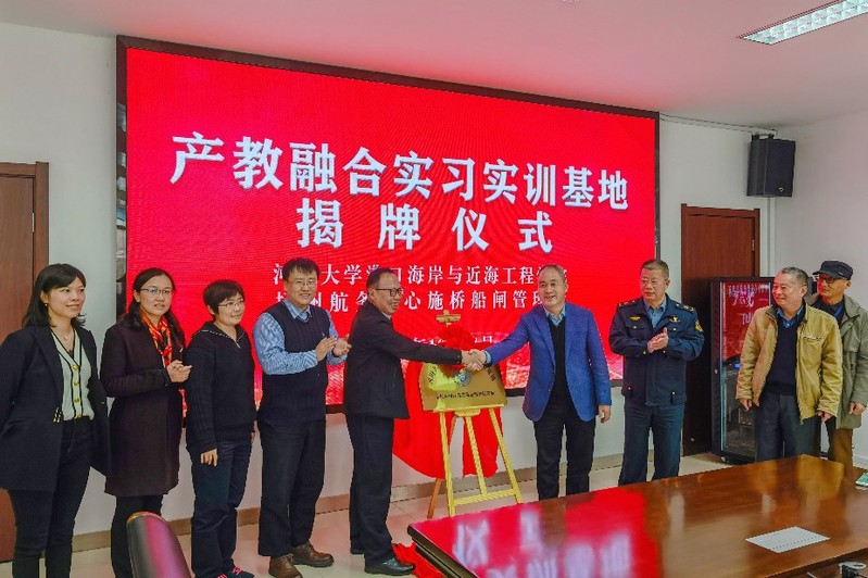 10月21-22日,成人漫 党委书记胡忠华、副院长张蔚、系主任姚鹏等一行6人赴扬州航务中心施桥船闸管理所、南通沿海开发集团举行 “产教融合实习实训基地” 共建揭牌仪式。扬州航务中心主任刘卫东、施桥船闸副所长吕祥斌、南通沿海开发集团副总经理张海荣、通州湾投资开发有限公司总经理杨宏兵等对方单位代表出席了揭牌仪式。