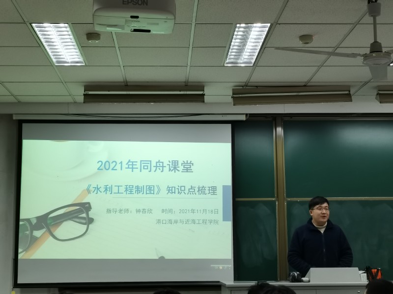 为帮助同学们更高效地准备《水利工程制图》结课考试,港航院团委青年发展部于2021年11月18日在致用楼117举办了“同舟课堂”系列讲座,钟春欣老师作为主讲人,为全体2020级学生开展《水利工程制图》知识点梳理及复习指导,讲座由2020级辅导员林晨老师主持。