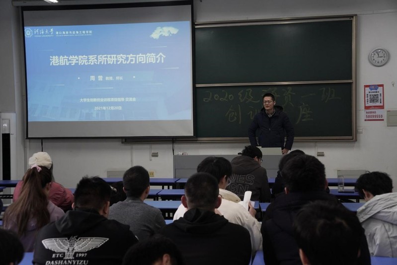 为鼓励同学们积极参加创训,帮助同学们对创训有更加全面的了解,2021年12月20日下午,2020级海资1班在江宁校区励学楼102举办了创训宣讲活动,海岸带资源与环境研究所所长周曾老师、海岸带资源与环境系主任姚鹏老师、2020级辅导员林晨老师及2020级海资1班全体学生参加。