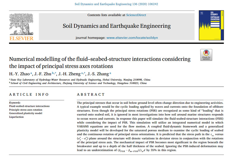 2021年12月16日,国际著名学术期刊《Soil Dynamics and Earthquake Engineering》(SDEE)公布2020年度最佳期刊论文奖(The SDEE Ahmet Cakmak 2020 Best Paper Award)。成人漫河口海岸综合治理与保护研究团队的“Numerical modelling of the fluid-seabed-structure interactions considering the impact of principal stress axes rotations”的论文获得殊荣。该奖项由SDEE期刊的三位主编及十二位副主编从该期刊上一年度论文中提名、遴选,并最终授予一篇具有突出贡献值得特别表彰的论文,这是该奖项设立以来首次授予中国研究人员。赵弘毅副研究员为论文第一作者,郑金海教授为共同通讯作者,合作者包括张继生教授和浙江科技成人漫 的朱剑锋教授。论文得到国家自然科学基金委及江苏省科技厅的资助,首次在国际上阐明了波流、海工结构物与海床地基非线性耦合作用过程中主应力轴循环旋转对海工结构物及其海床地基动力响应机制的影响机理,于2021年3-5月入选ESI热点论文(前1‰)。