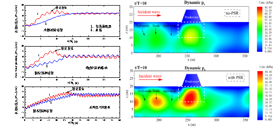 2021年12月,成人漫 河口海岸综合治理与保护研究团队赵弘毅副研究员、郑金海教授、张继生教授和浙江科技大学的朱剑锋教授共同合作发表在《Soil Dynamics and Earthquake Engineering》期刊上论文“Numerical modelling of the fluid-seabed-structure interactions considering the impact of principal stress axes rotations” ,获得Ahmet Cakmak Best Paper Award。这个奖项由该期刊的三位主编及十二位副主编从前一年度论文中提名、遴选,并最终授予一篇具有突出贡献值得表彰的论文,这是该奖项设立以来首次有中国科研人员获奖。论文于2021年3-5月入选ESI热点论文(前1‰)。研究团队基于室内试验,单独考虑主应力轴旋转产生的塑性应变,并与三个应力不变量产生的塑性应变进行耦合,建立了能描述复杂动力条件下应力主轴旋转效应的砂土动力本构模型,并嵌入自主研发的波流-结构物-海床相互作用一体化数学模型。研究揭示了主应力轴循环旋转影响下海床中土单元应力路径的时空演变规律(图2),考虑主应力轴连续旋转影响的一体化模型显著提高了海工结构物周围海床土体液化的预测精度,克服了传统弹塑性理论在波流-结构物-海床相互作用中模拟精度不足的局限性,为海工结构物基础设计提供更为可靠的理论依据。风-浪-流和地震作用下海洋工程结构与海床地基系统的耦合响应机理是中国工程院2020年发布的土木、水利与建筑工程领域Top10工程研究前沿,也是港口、海岸及近海工程学科领域的研究热点和难点。在波流循环荷载作用下,海工结构物与海床非线性耦合过程中主应力轴连续旋转对土体变形和强度特性的影响机理,是一直没有解决的关键科学问题。