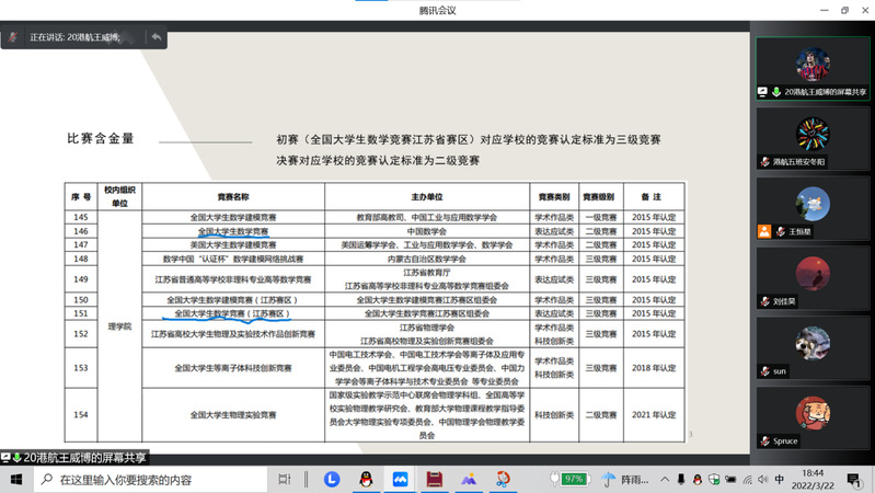 为帮助同学们更好的准备江苏省高等数学竞赛,港航院2021级举办了同舟课堂系列讲座——高数竞赛经验分享会。本次活动由2021级辅导员王恒星主持,港航院2020级本科生的刘佳昊、王威博做为主讲嘉宾分别从江苏省大学生数学竞赛、全国大学生数学竞赛两方面向21级的学弟学妹们进行了经验分享,港航院2021级本科生参与了此次分享会。