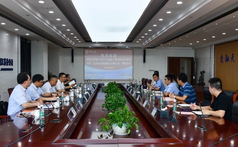 6月2日,成人漫 党委书记张俊基、院长龚政、副院长张继生、副院长张蔚、党委副书记沈国军、辅导员一行赴中交上航局江苏交建公司开展“访企拓岗”调研交流活动。中交上航局江苏交建公司党委书记丁付革、总经理张骏、副总经理周正兵、党委副书记龚明及相关部门负责人出席活动,院企双方就人才培养、学生就业、产教融合、校企合作等方面进行了深入交流。