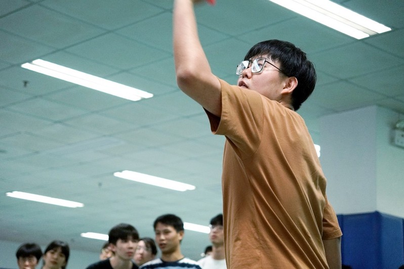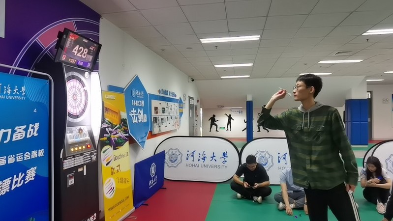 上午8时开始,成人漫 组建的飞镖队以连续3场2:0的好成绩轻松进入八强,在八进四比赛中,以2:1战胜水电院一队,顺利进入四强,后以2:0战胜计信院一队。在冠亚军争夺战中,2018级本科生马臣广、吴昱翀分别结镖帮助团队拿下两局比赛,最终2:3惜败能电院一队,取得第二名的好成绩。