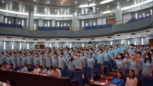 最后,港航院2022级本科生辅导员顾钰恒带领全体同学宣誓《做一名优秀的港航人》。典礼在校歌声中落下帷幕。