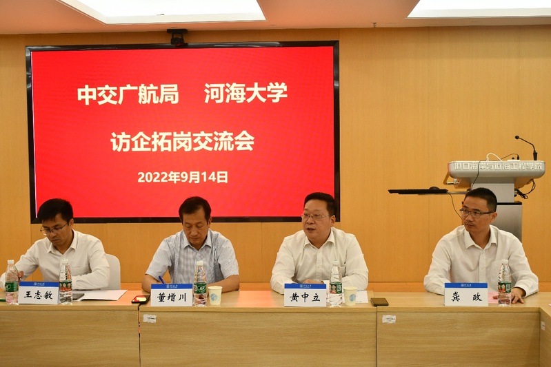 座谈会上,董增川副校长对黄中立副总经理一行的到来表示热烈欢迎。董校长通过16字校训刻画河海毕业生面貌,表示广大学生应牢固爱国情怀,熟练掌握专业本领,解决工程应用复杂问题。黄中立副总经理对广航局进行了基本的介绍,双方就人才培养,产教融合、学生就业等相关工作进行深入探讨和交流,达成多项共识,进一步畅通学生就业渠道,推进双方校企合作的深入开展。