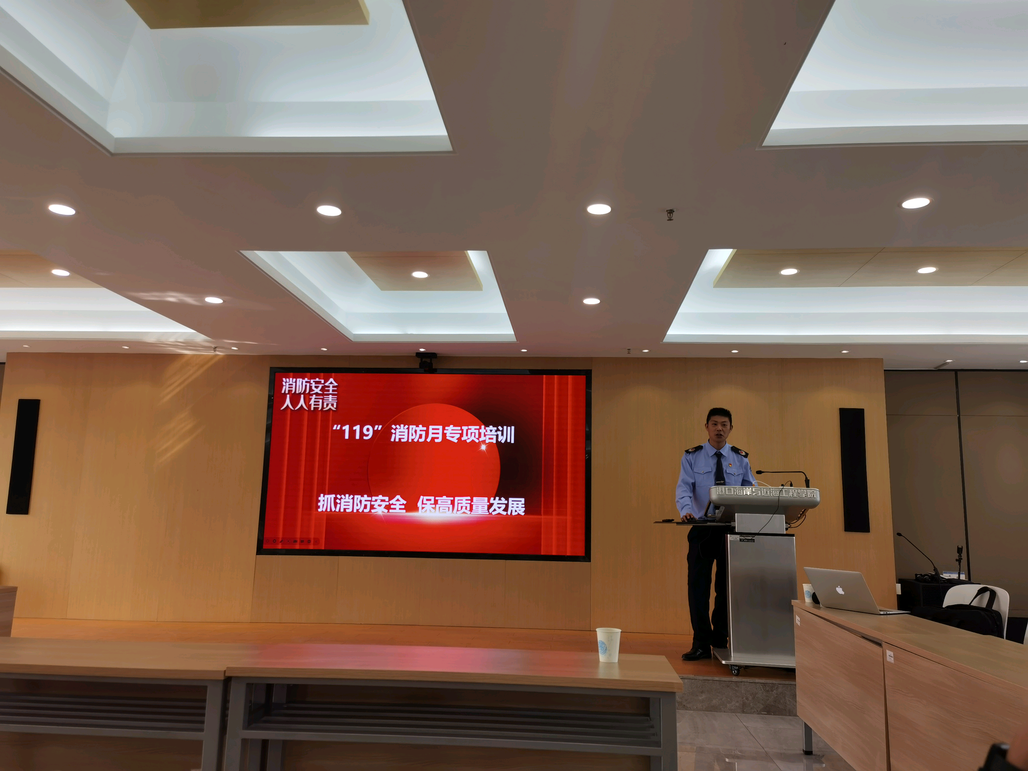 最后,陈永平副院长做总结发言,希望通过这次实验室安全应急演练和安全培训,提高师生安全责任意识,加强实验室安全建设,探索建立实验室安全长效管理机制。