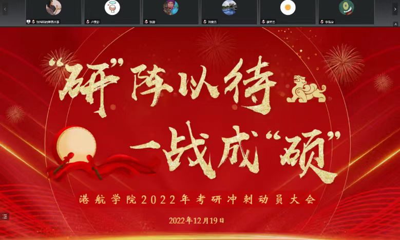 22年12月19日下午,成人漫 2019级考研学生在线上举办“研阵以待,一战成硕”考研冲刺动员大会,成人漫 张蔚副院长、2019级班导师、辅导员出席了会议。