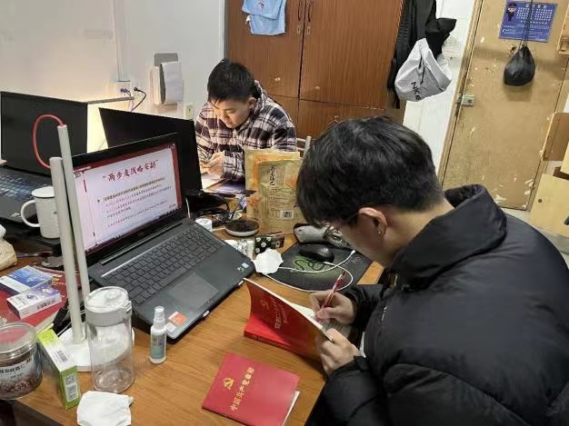 港航院研究生学硕第二党支部组织支部成员观看党的二十大报告解读系列节目《奋斗 新的伟业》,围绕学习“党的二十大对党章的修改内容”开展党课,经过学习大家深刻意识到,身为党员要把党章作为必修课,经常学习对照,内化于心、外化于行,做党章的忠实践行者。支部还开展了“回顾信仰起源,品悟真理力量”主题党日活动,通过学习《共产党宣言》,鼓励青年党员坚定马克思主义信仰,不忘初心,牢记使命。