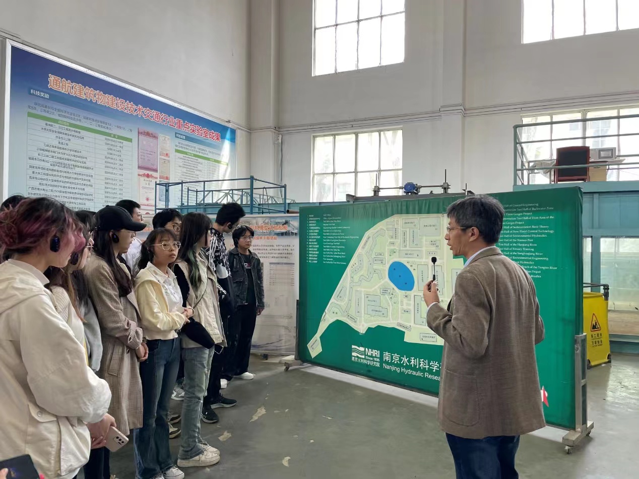 在长江下游试验厅,老师给同学们讲解了长江南京以下12.5米深水航道整治工程研究、沪通长江大桥模型实验研究等,了解了长江江苏段水动力及泥沙输移机理、河床演变及工程河势控制工程措施。