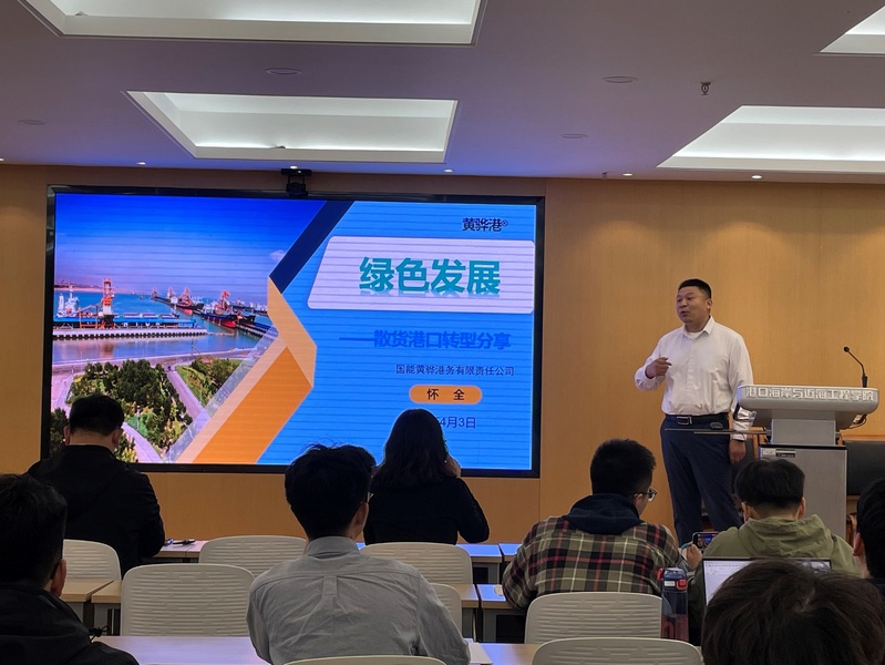 2023年4月3日,国家能源集团黄骅港务公司生产保障中心经理怀全应海岸灾害及防护教育部重点实验室邀请,于严恺馆702会议室进行了题为“绿色港口建设与运营关键技术:绿色发展-散货港口转型分享”的学术报告。报告会由封学军教授主持。