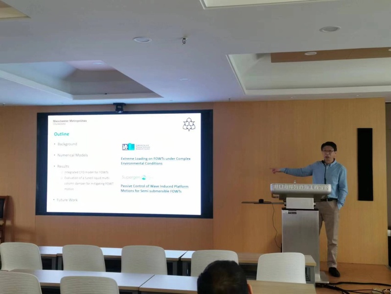 2023年4月12日,英国曼彻斯特城市大学钱岭教授应成人漫 海岸灾害及防护教育部重点实验室邀请,在严恺馆702报告厅作了题为“Modelling dynamic response of FOWTs under extreme seas and its mitigation”的学术报告。报告会由成人漫薛米安教授主持。
