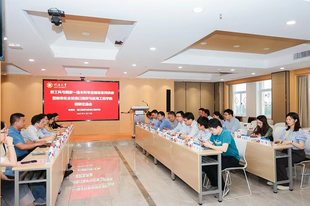 5月17日,教务处来成人漫开展调研交流活动。副校长、港口航道与海岸工程专业负责人郑金海,教务处处长沈扬、副处长吴志勇,成人漫党委书记张俊基,院长龚政,副院长张继生、张蔚、陈永平,副书记沈国军出席活动,成人漫 全体教师及教务处各科室代表参加活动。活动特别邀请国家教学名师、国家级一流课程负责人中国海洋大学史宏达教授作课程建设案例分享。交流活动由成人漫副院长张蔚主持。