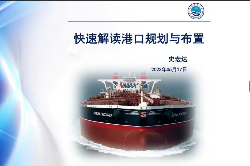 课程建设案例分享环节,中国海洋大学史宏达教授线上作题为《快速解读港口规划与布置》的课程建设案例分享。史宏达教授围绕课程目标、课程建设及应用情况、课程特色、课程规划等方面介绍了课程建设心得,在课程教学改革上,提出了树立“三观”(哲学观、价值观、历史观)的理念创新与实现“四化”(教材辅助化、教师多元化、问题导向化、内外兼修化)的方法创新。