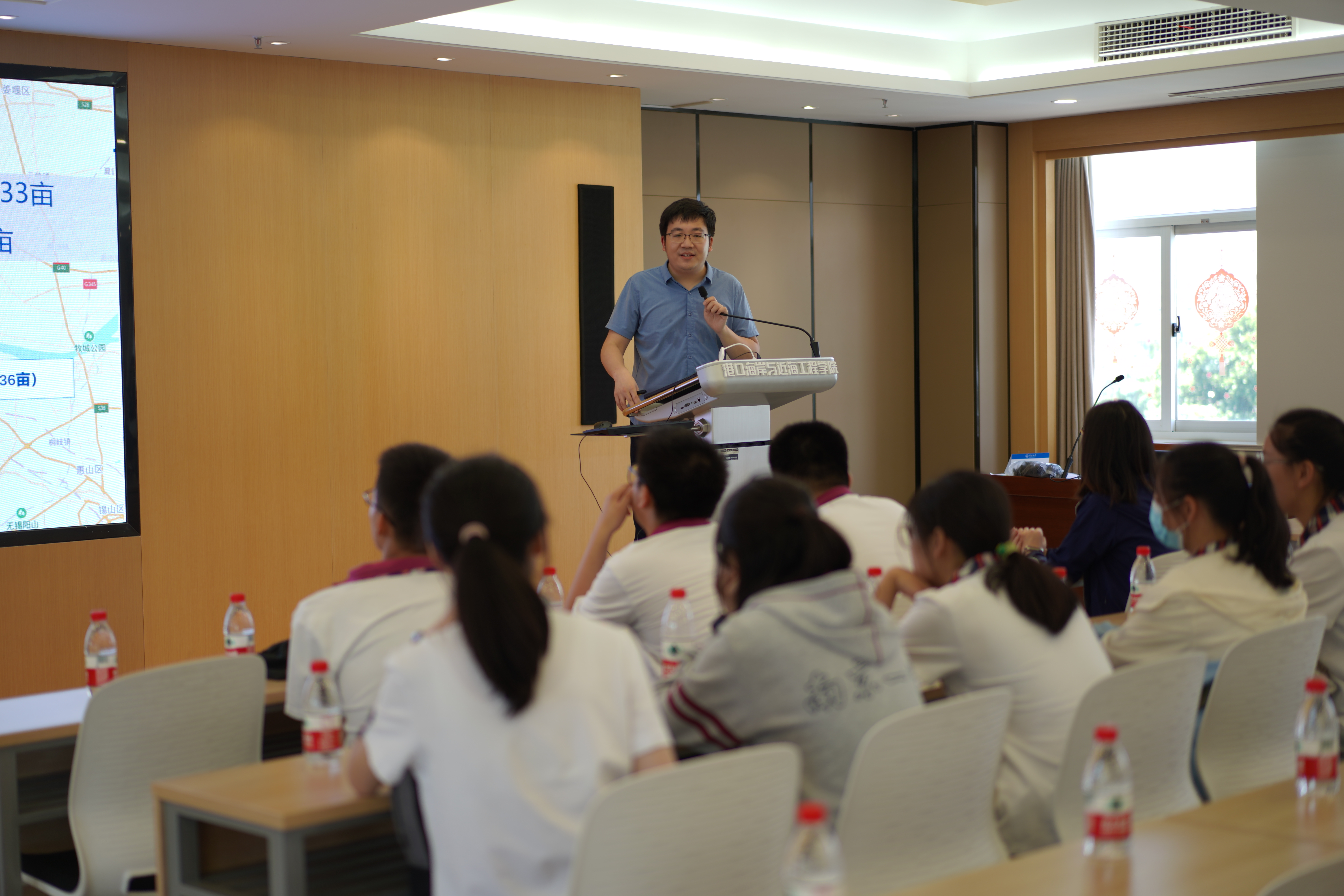 在严恺馆702会议室,南京一中2013届毕业生、港航院辅导员林晨老师介绍了我校的办学情况,带领同学们了解了水利学科的内涵与特色。姚鹏老师为同学们带来了海岸防护科普讲座,鼓励同学们上机体验海平面上升环境下海堤防护虚拟仿真实验系统,生动学习了海岸防护的科学知识。借助乐高模型,陈欣迪老师为同学们讲解了海洋、波浪的相关知识。同学们在科普讲座与互动游戏中领略了我国水利事业的建设成就,培养了科学文化素养与创造性思维。