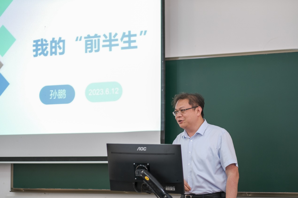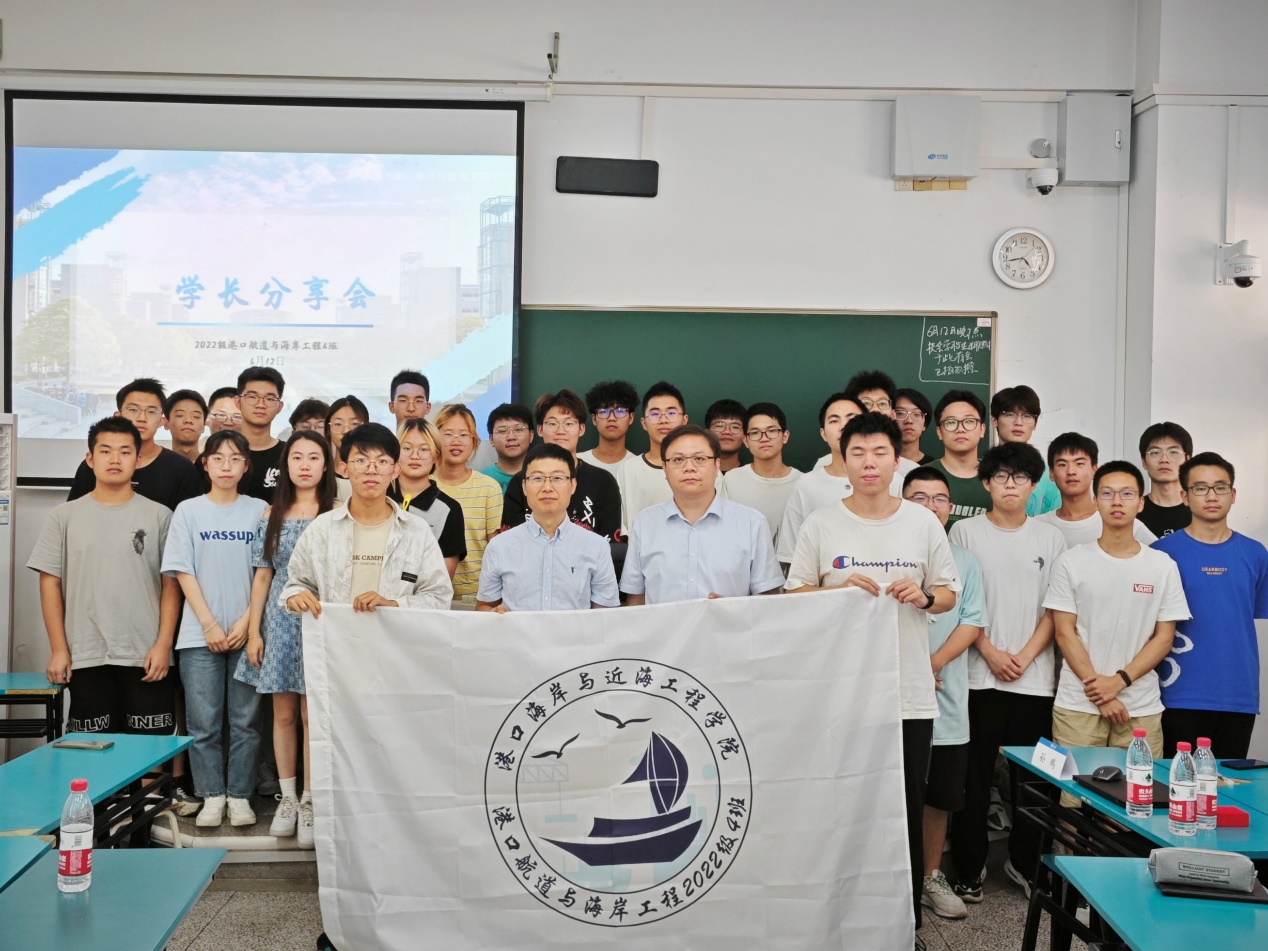 2023年6月12日,中交上航局上海交通建设总承包有限公司党委副书记、副总经理(主持工作)孙鹏为2022级港航4班带来题为“我的‘前半生’”的生涯分享。2022级港航4班全体学生参加活动,班导师陶爱峰教授出席并主持。
