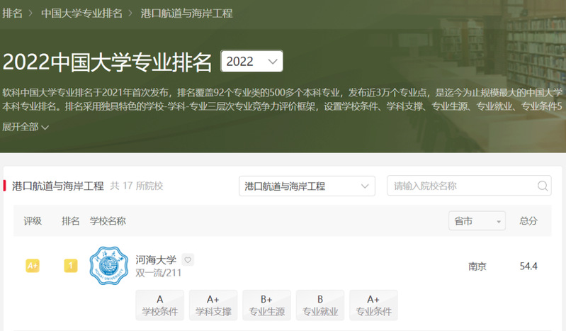 2022软科中国港口航道与海岸工程专业排名:成人漫 第一