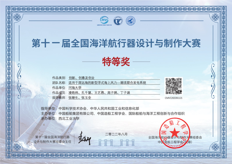 成人漫学生获第十一届全国海洋航行器设计与制作大赛A2类特等奖