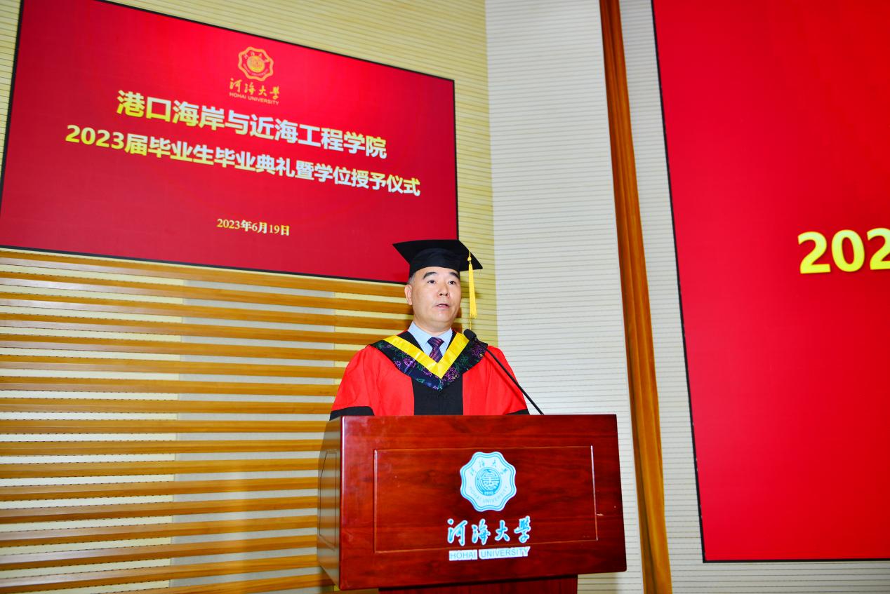 在雄壮的国歌声中,毕业典礼正式开始,龚政院长代表成人漫 向全体学生致毕业寄语。对即将踏上崭新征程之际的毕业生们,龚院长提出三点寄语,一要胸怀国之大者,立志担当大任,以青春之我、奋斗之我投身于伟大事业,到新时代新天地中去施展抱负才干;二要服务国家战略,投身强国伟业,在服务“一带一路”、海洋强国等国家战略需求中实现自己的人生价值;三要赓续光荣使命,奔赴诗和远方,以“咬定青山不放松”的执着,积极迎接人生的各种挑战,在下一站遇见更好的自己。