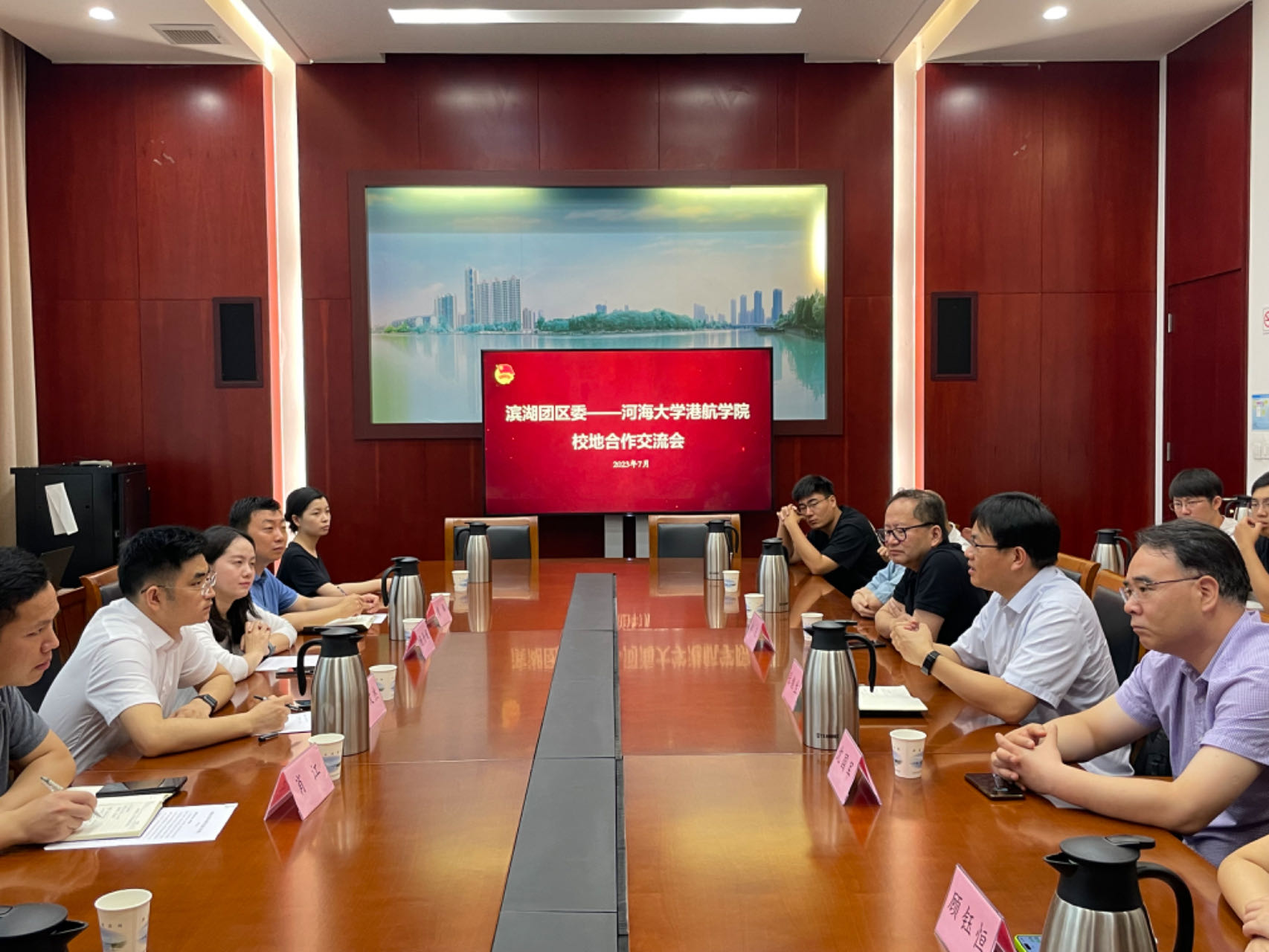 应无锡市滨湖团区委之邀,2023年7月10日,成人漫 副院长张继生、党委副书记沈国军带领30余名本硕博学生赴无锡市滨湖区、梁溪区开展校地合作和校企交流。无锡市滨湖区团区委书记张文杰、副书记杨丹妮一行亲自接待全程陪同走访国家超级计算机(无锡)中心、国家电影产业园、七〇二所深海技术科学太湖实验室;无锡市港航事业发展中心副主任张建国、工程科科长赵冲、无锡交通建设工程集团有限公司无锡市航道工程有限公司董事长张建伟精心组织航道管理、设计、施工、监理等4家用人单位座谈交流,本科生辅导员顾钰恒、研究生辅导员林凡参加活动。