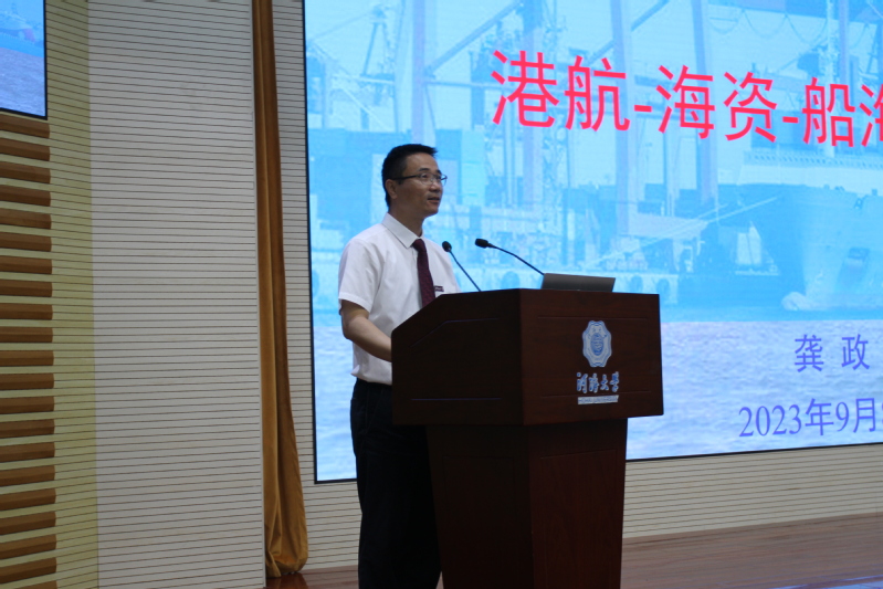 龚政院长以“港航—海资—船海 携手前行”为题,从“学校概况”、“学院介绍”、“校友风采”三个方面,阐述了了新时期“水利”的内涵,介绍了学院的近70年的办学历程、发展现状、专业特色、就业方向、人才培养和杰出校友等方面的情况,鼓励同学们要练真本领,要从在开始树立目标、做好规划,要学好专业、夯实基础,要以水利工程一流学科平台为支撑,学习港航校友的行业奉献精神,不负韶华,认真学习,热爱水利,学成后到祖国需要的地方建功立业。