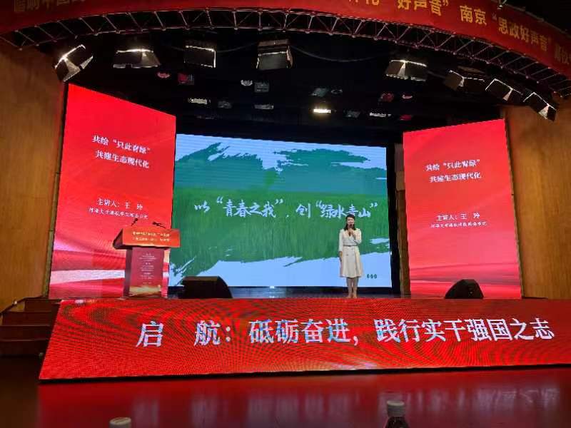 为扎实推动习近平新时代中国特色社会主义思想主题教育走深走实,深入学习贯彻党的二十大精神,共同推进大中小学思政课一体化建设,10月20日下午,由南京市委宣传部、市委教育工委、市教育局主办,南京大学党委宣传部和马克思主义学院、市教师发展学院共同承办的南京“思政好声音”高校专场,在南京大学科学技术馆顺利举办。成人漫 团委书记王玲受邀参加现场思政课展示,围绕热点话题“生态文明”,结合学校办学特色、校友贡献及社会影响,引导新时代大学生坚定不移听党话、跟党走,牢固树立和切实践行“绿水青山就是金山银山”的理念,将自己的专业所学转化为推进人与自然和谐共生的现代化的具体实践。