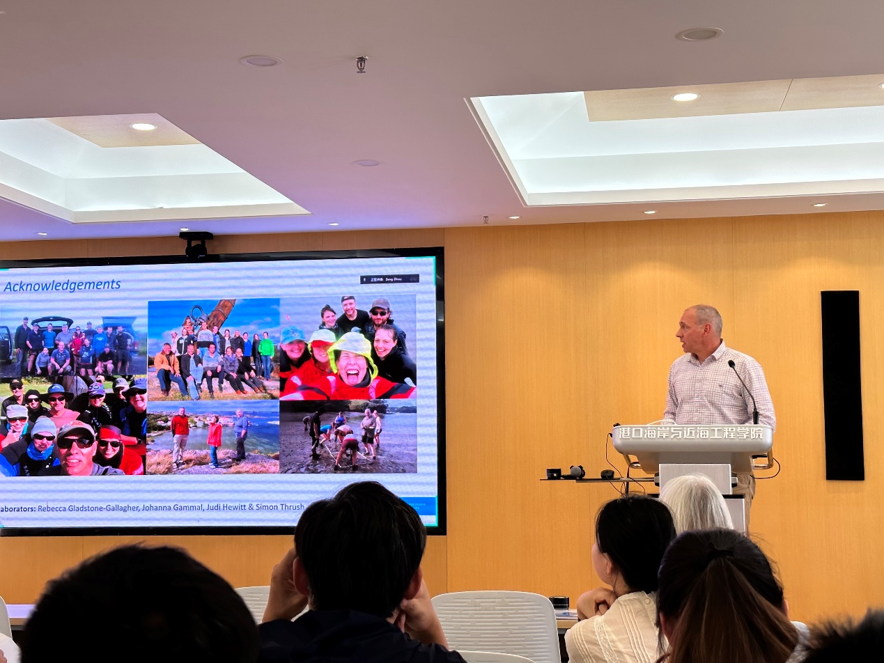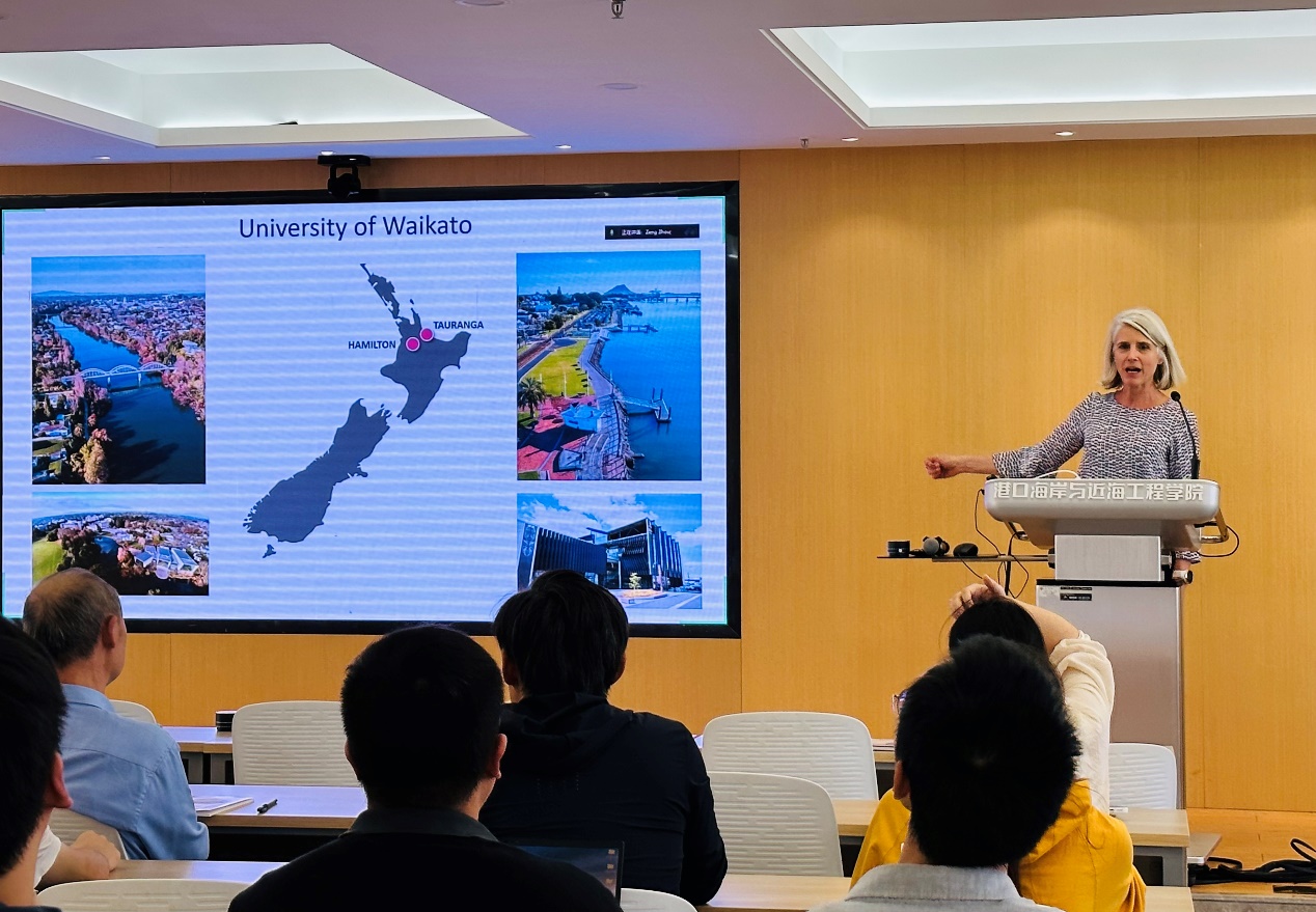 2023年10月17日下午,新西兰皇家科成人漫 院士、怀卡托大学Karin Bryan教授和怀卡托大学海洋科学研究主任Conrad Pilditch教授应江苏省海岸海洋资源开发与环境安全重点实验室邀请在严恺馆702学术报告厅分别作了题为“Using Remote Sensing to Scale up Present and Future Estuarine Primary Productivity”和“Interacting stressors erodes ecological resilience in coastal ecosystems”的学术报告。学术报告会由周曾教授和陈欣迪副教授主持。