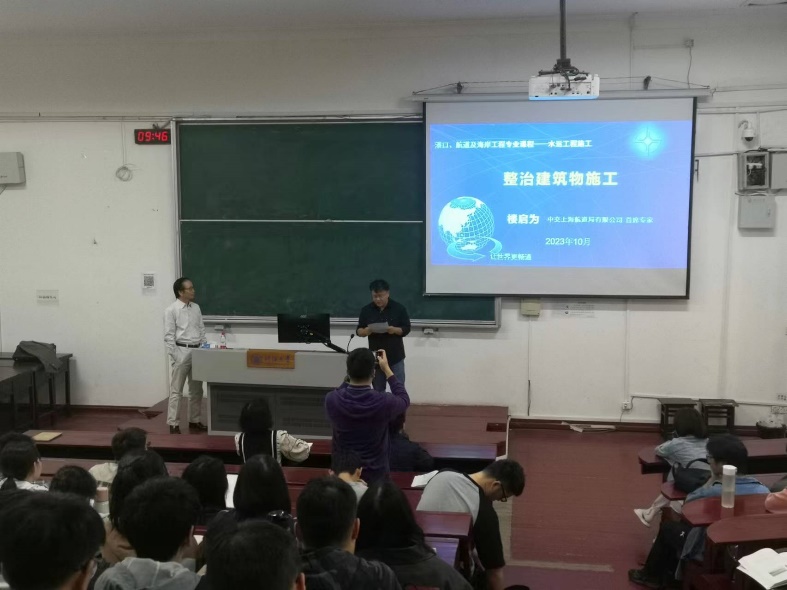 为进一步推进校企合作,深化产教融合,2023年10月13日,港航院邀请全国劳模、中交上海航道局有限公司首席专家、成人漫 兼职教授楼启为总工,给2020级港航专业本科生进行《水运工程施工》课程授课。